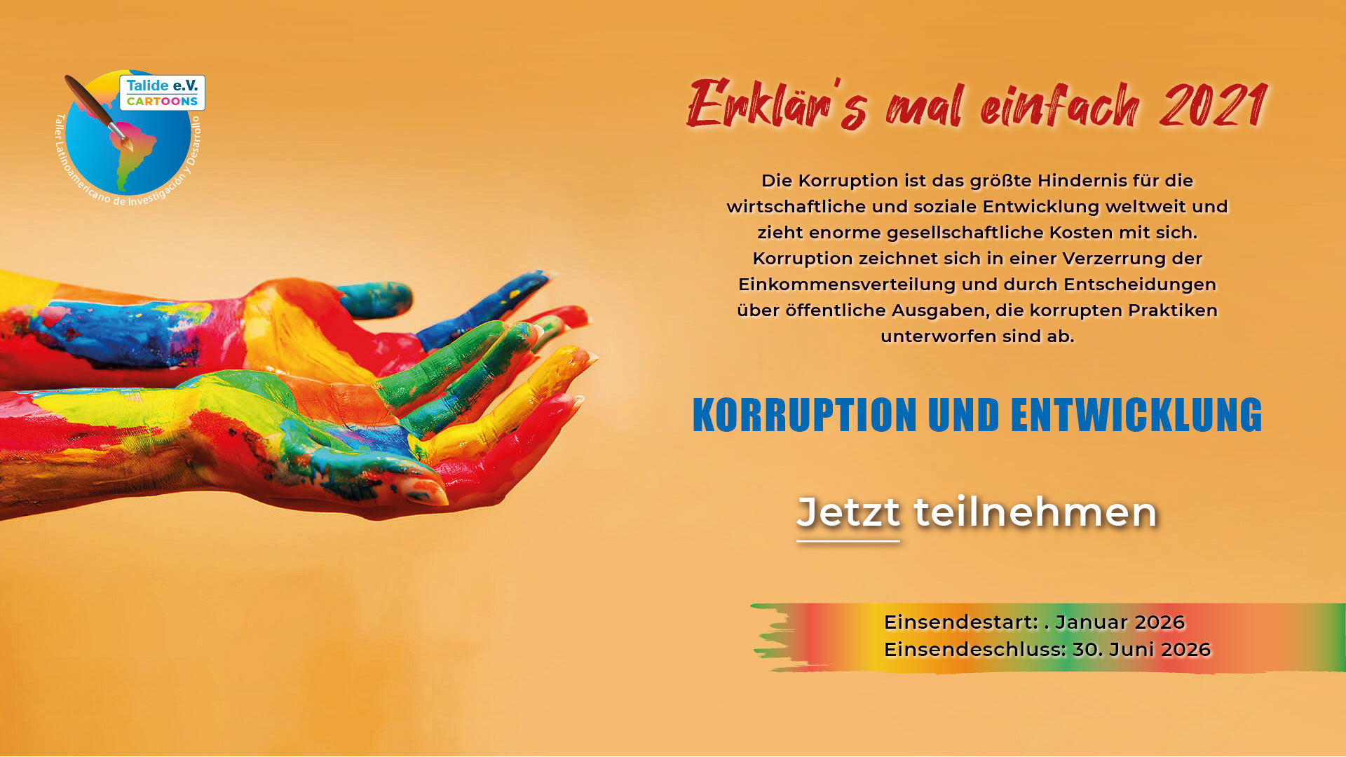 Daher suchen Wir Dich und deine satirischen und kritischen Betrachtungen der Korruption, die humorvoll die Gesellschaft zum Thema Korruption sensibilisieren und aufklären.